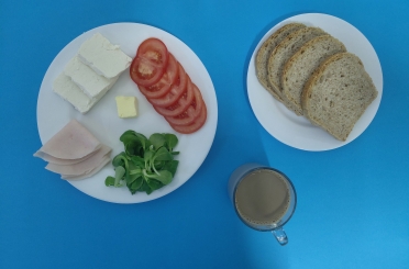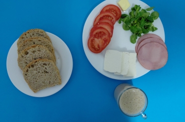 Kawa zbożowa z mlekiem z/c 250 ml (GLU, MLE) mozzarella 60 g