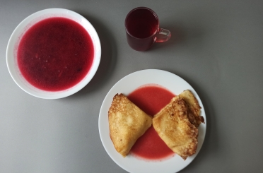 Naleśniki z serem polane sosem malinowym (opiekane) 350 g (GLU, JAJ, MLE)