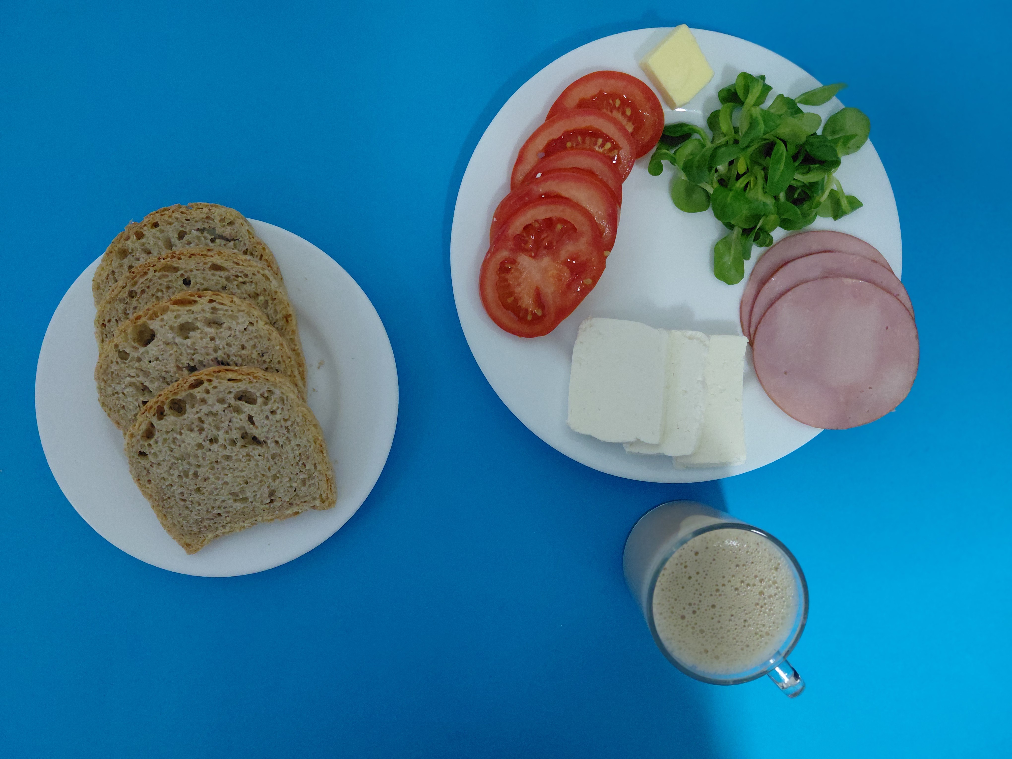 Kawa zbożowa z mlekiem b/c 250 ml (GLU, MLE) mozzarella 60 g